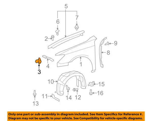 53847-33010: پارت نامبر مشابه برای سمت راست (شاگرد).53886-33040: شلگیر پلاستیکی داخل گلگیر چپ (Fender Liner) که برای دسترسی بهتر ممکن است نیاز به باز کردن آن باشد.- انواع خار و پیچ گلگیر: در صورت شکستن یا گم شدن هنگام باز و بست.