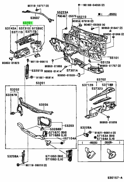 74404-12260(اغلب به دلیل اسید پوسیده است). - پایه نگهدارنده گلگیر: براکتهایی که گلگیر بیرونی را به این سینی متصل میکنند.
