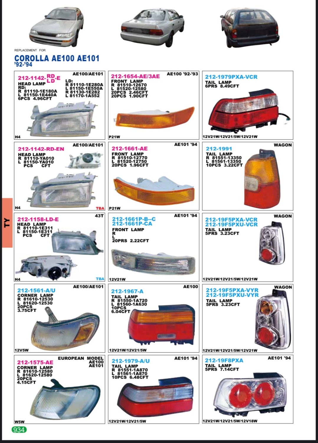 - نام بازاری: راهنما داخل سپر کرولا، چراغ پارک سپر، راهنما سپر کرولا اتاق ۱۰۰ (تخممرغی).