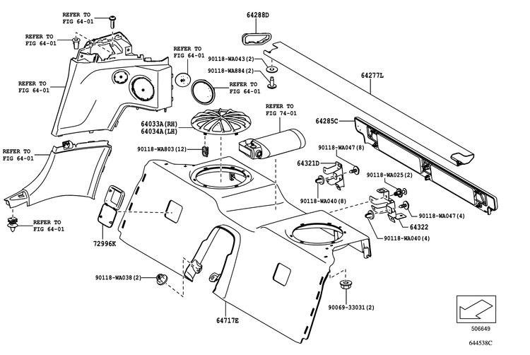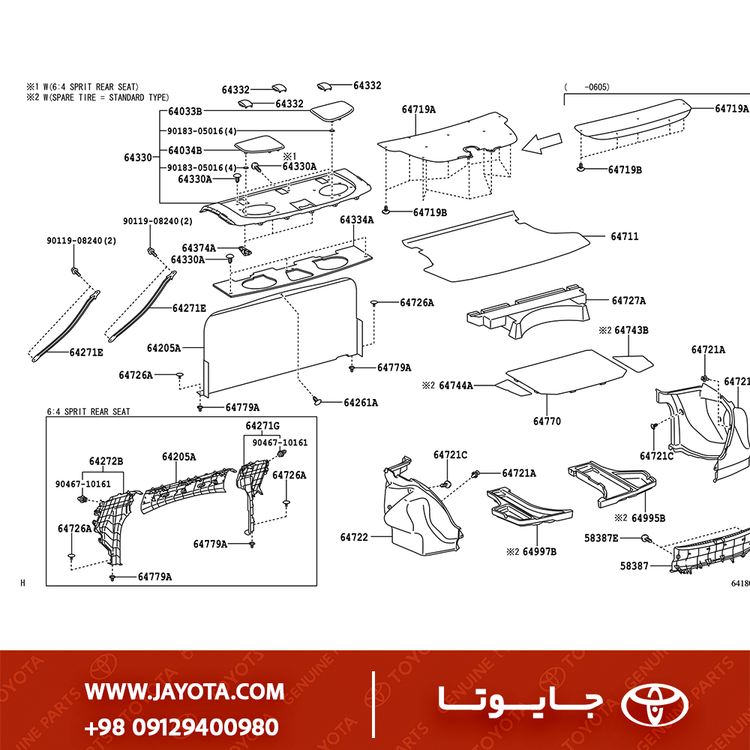 64330-52xxx(Package Tray Trim): خودِ پنل نمدی/فیبری طاقچه عقب که این نوار روی آن نصب میشود.- شیشه عقب: که این نوار با آن در تماس است.
