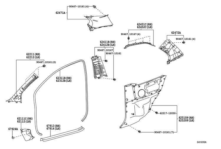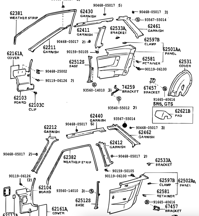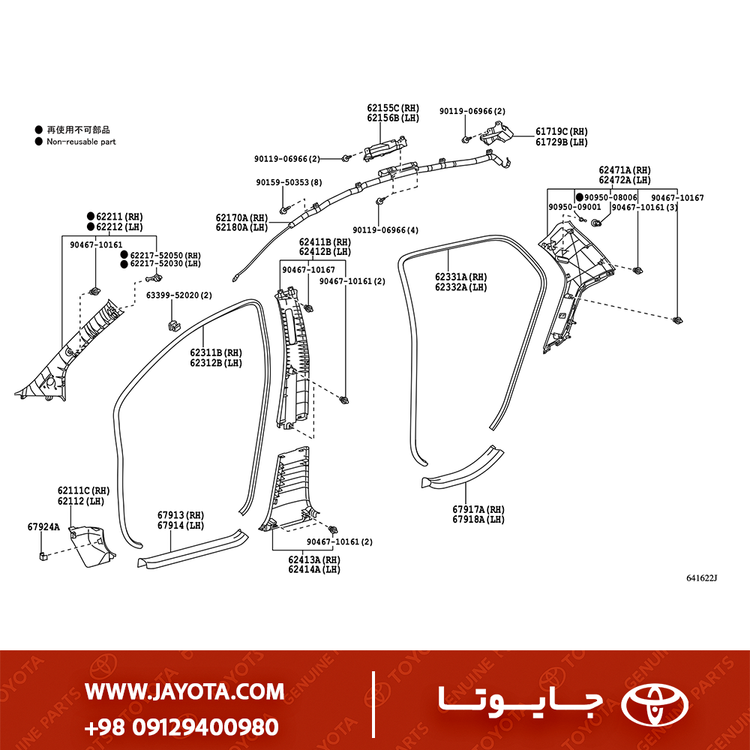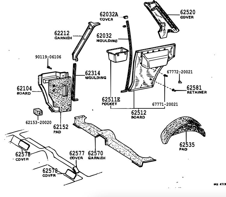 62471-52180-B0 - نام فنی دقیق: GARNISH, ROOF SIDE INNER, REAR RH (تزئینات داخلی سقف/ستون، عقب، راست)