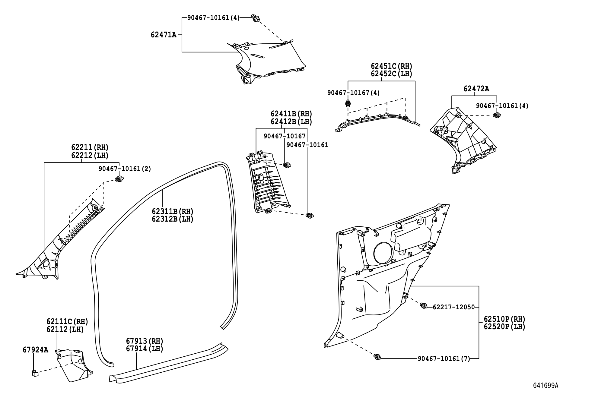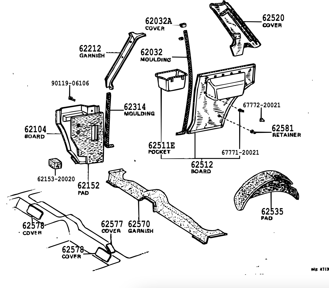 62471-52180-B0 - نام فنی دقیق: GARNISH, ROOF SIDE INNER, REAR RH (تزئینات داخلی سقف/ستون، عقب، راست)