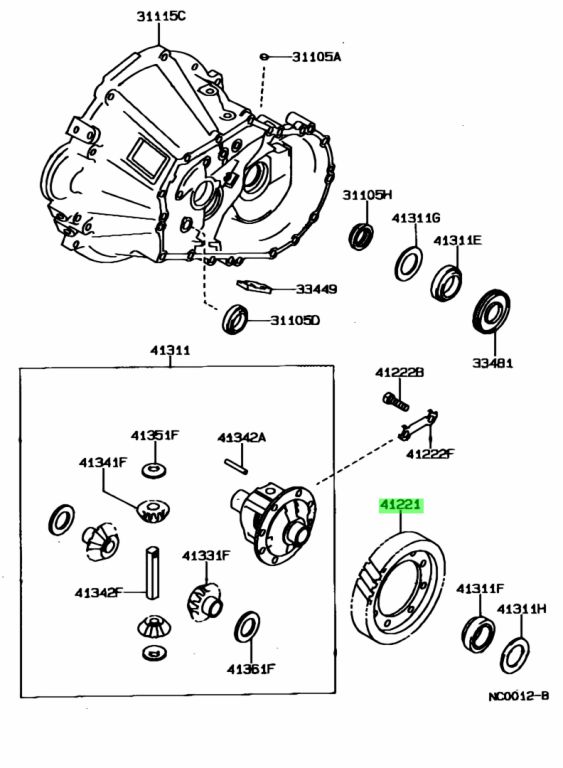 - Diff Case Bolts: پیچهایی که کرانویل را به هوزینگ دیفرانسیل متصل میکنند (باید با چسب قفل رزوه بسته شوند).