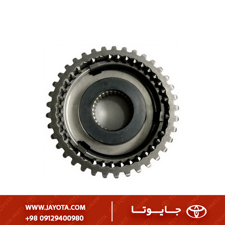 این قطعه “Hub, Transmission Clutch No. 2” نام دارد و جزء اصلی سیستم سنکرونیزه دنده ۳ و ۴ در گیربکس دستی تویوتا پرویا (Previa) نسل دوم است. این توپی دارای هزارخاری داخلی برای قفل شدن روی شفت و شیارهای خارجی برای هدایت غلاف کشویی است.