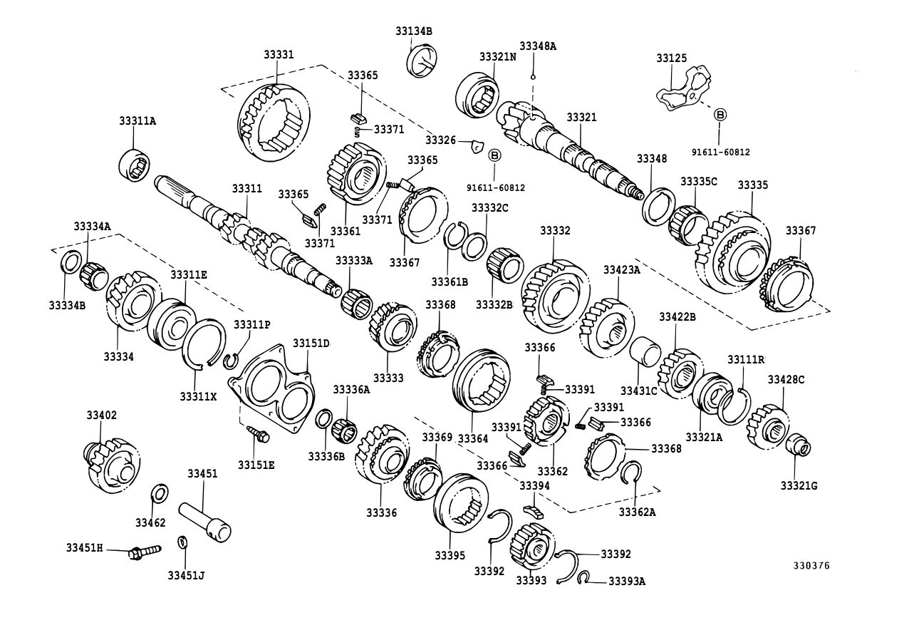 33362-1203033366-20010 (3 عدد) - این ساچمهها معمولاً با مجموعه 1 و 2 مشترک هستند.33365-20030 (2 عدد) - این فنرها نیز مشترک هستند.33368-xxxxx) و برای دنده 4 (33368-xxxxx) که باید هر دو بررسی و در صورت نیاز تعویض شوند.مشخصات ساختاری این کشویی مشابه کشویی قبلی است، اما ابعاد و پروفیل دندانههای داخلی آن ممکن است تفاوتهای جزئی داشته باشد.