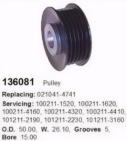 نکته مهم: این پولی معمولاً برای مدلهایی است که دینامهای 40A تا 55A دارند و از تسمه نوع V (نه تسمه شیاری پهن) استفاده میکنند.
