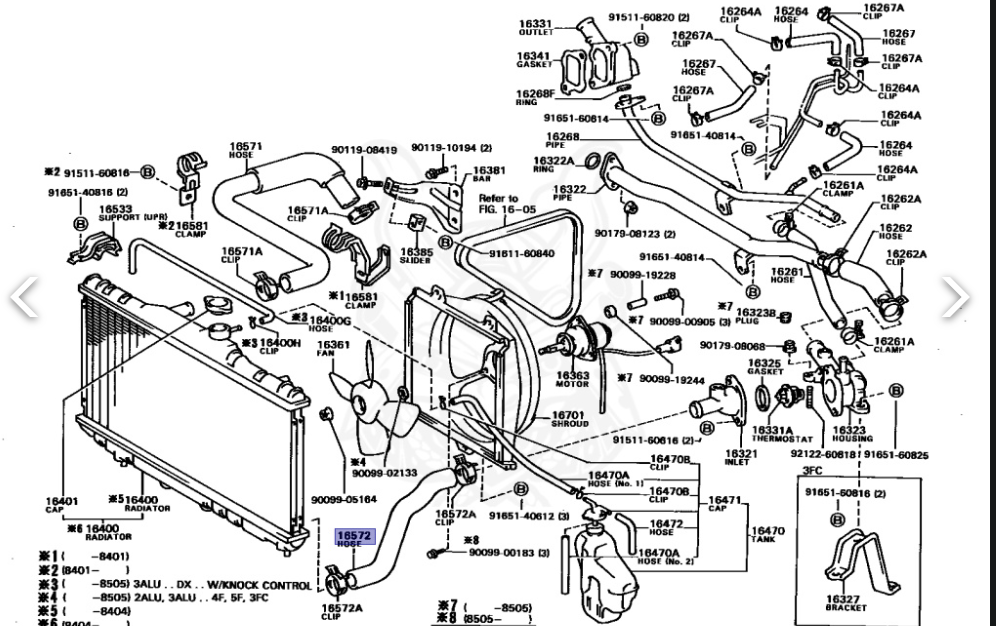 | Lower Hose (Carburetor) | 1.6L | 4A‑L | 78–85 |