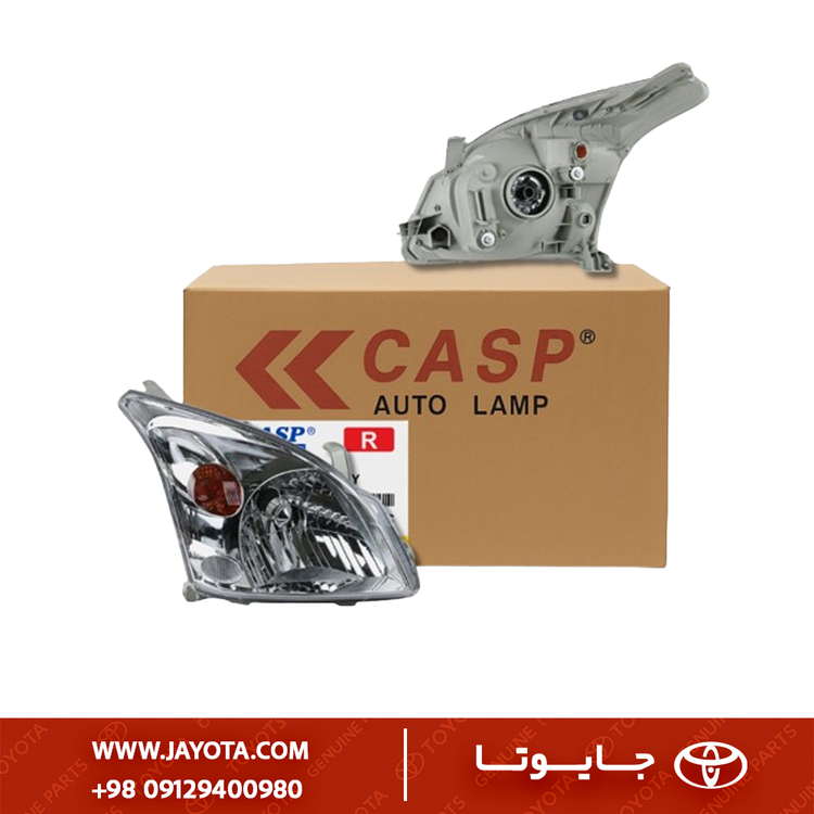 چراغ جلو موتوردار پرادو ۲۰۰۸ CASP به صورت پروژکتوری نیمه‑رفلکتوری طراحی شده و دارای موتور تنظیم ارتفاع DC Stepper 12 V میباشد که از داخل کابین زاویه تابش را کنترل میکند.