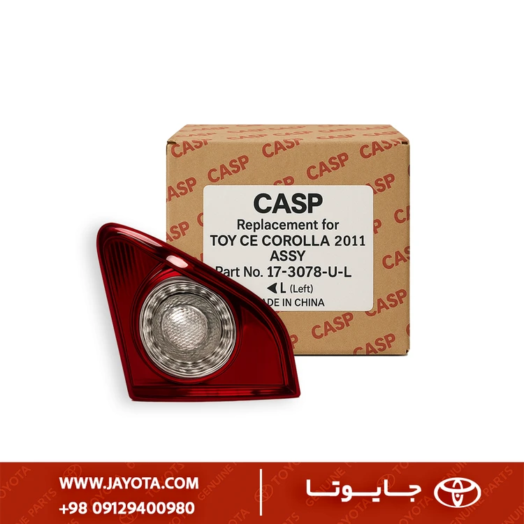 چراغ خطر عقب تویوتا کرولا ۲۰۱۱ CASP نسخهای لهبهله برابر با طرح اصلی Koito Japan است و بهصورت چهارتکه (دو چراغ روی گلگیر + دو چراغ روی صندوق) طراحی شده.
