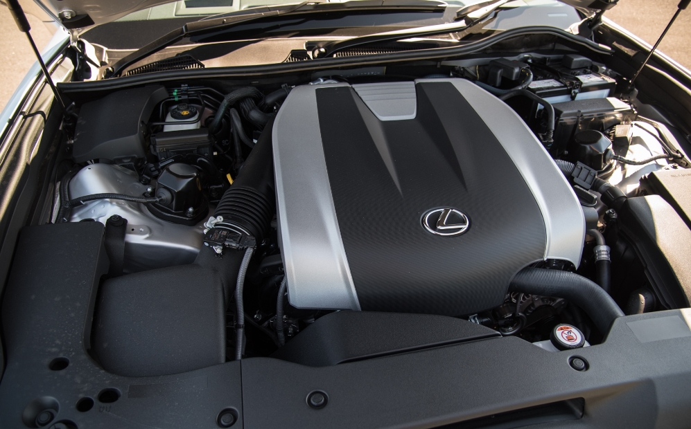 - نشان تجاری: لوگوی برجسته و کرومکاری شده “Lexus” و عبارت “V6” روی آن درج شده که جزئی از هویت بصری محفظه موتور است.