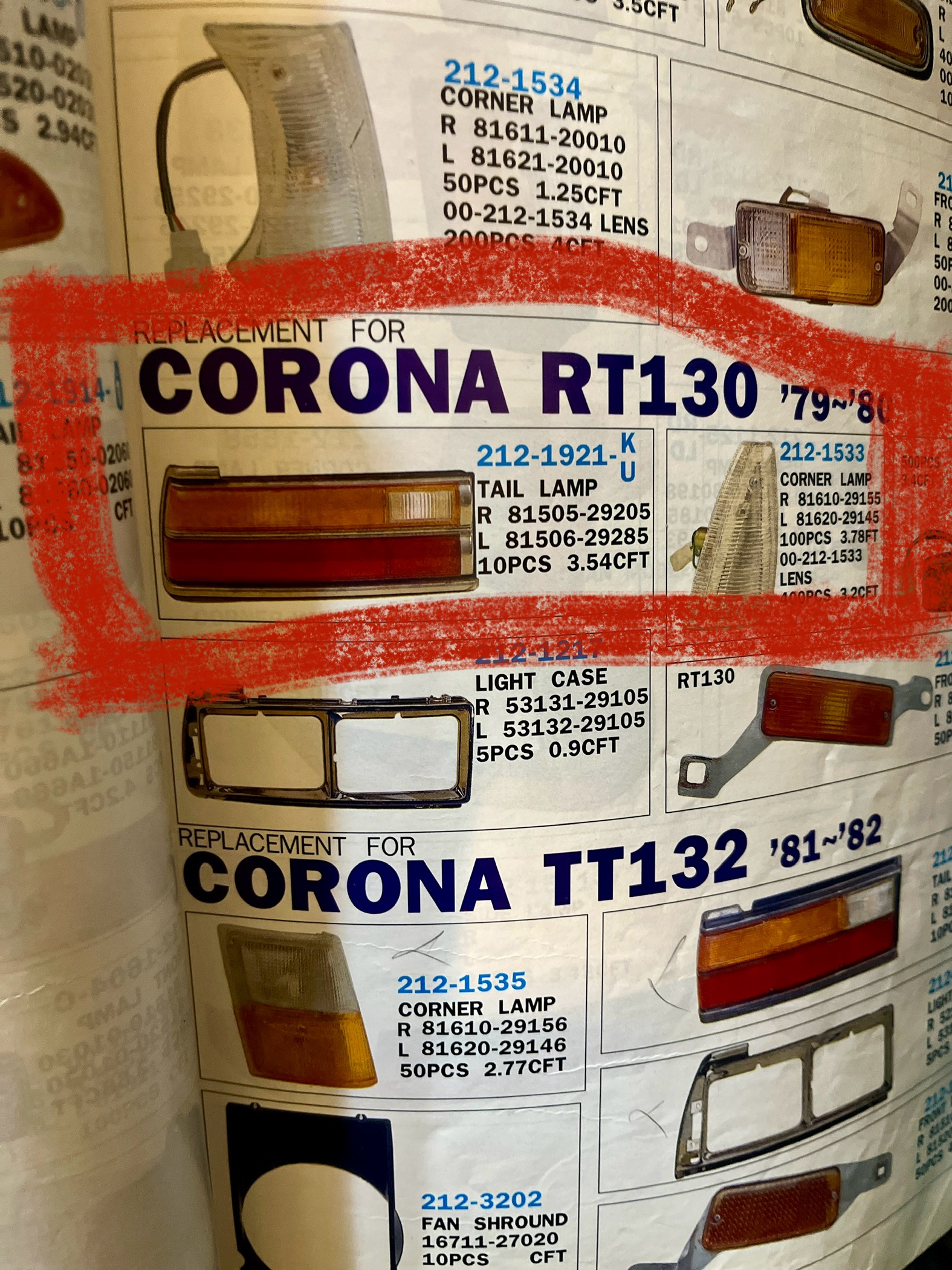 در سالهای ۸۱ و ۸۲، کرونا فیسلیفت شد و گرافیک چراغ عقب تغییر کرد (معروف به کرونا دماغه کج). چراغ مدل ۷۹-۸۰ روی مدلهای ۸۱-۸۲ ممکن است از نظر پیچ و سوکت نصب شود اما طرح ظاهری (و گاهی جای قفل صندوق) متفاوت است. |