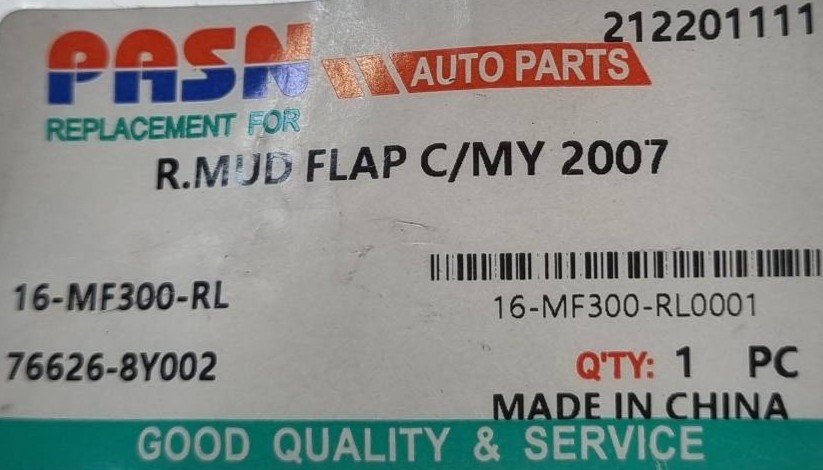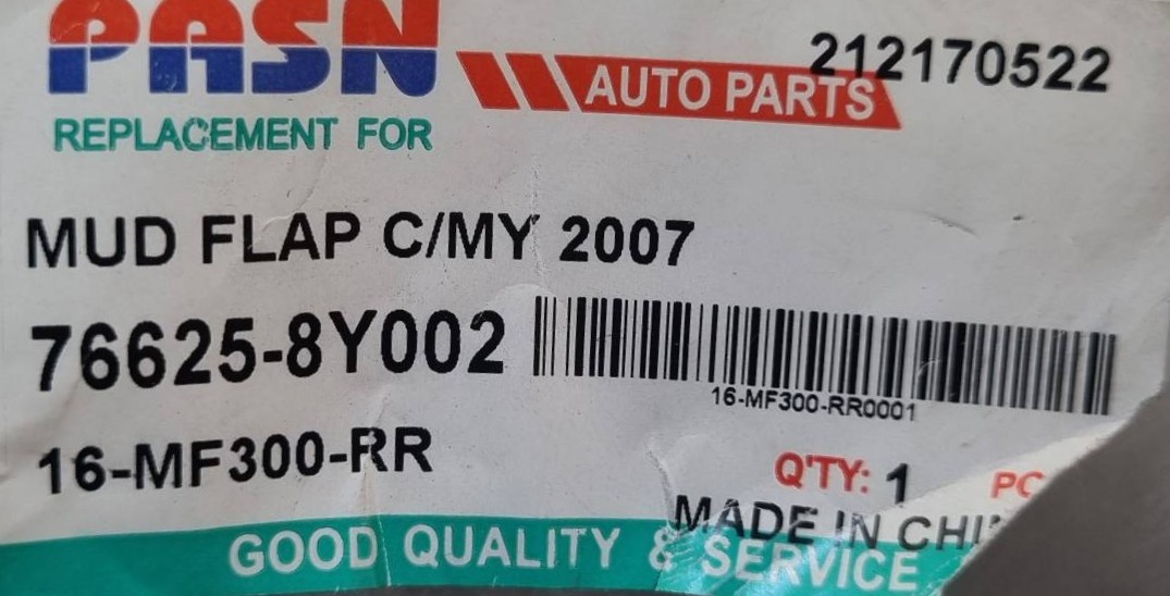 Toyota Camry 2007–2011 Rear Mud Flap Left & Right – PASN China