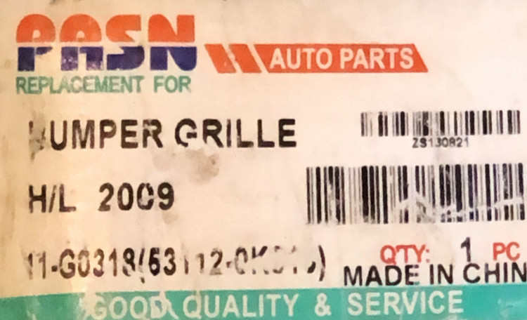این محصول زه (Moulding) نصب شده روی سپر جلو تویوتا هایلوکس ویگو (مدل ۲۰۰۹) است که توسط برند چینی Pasen تولید شده است.
