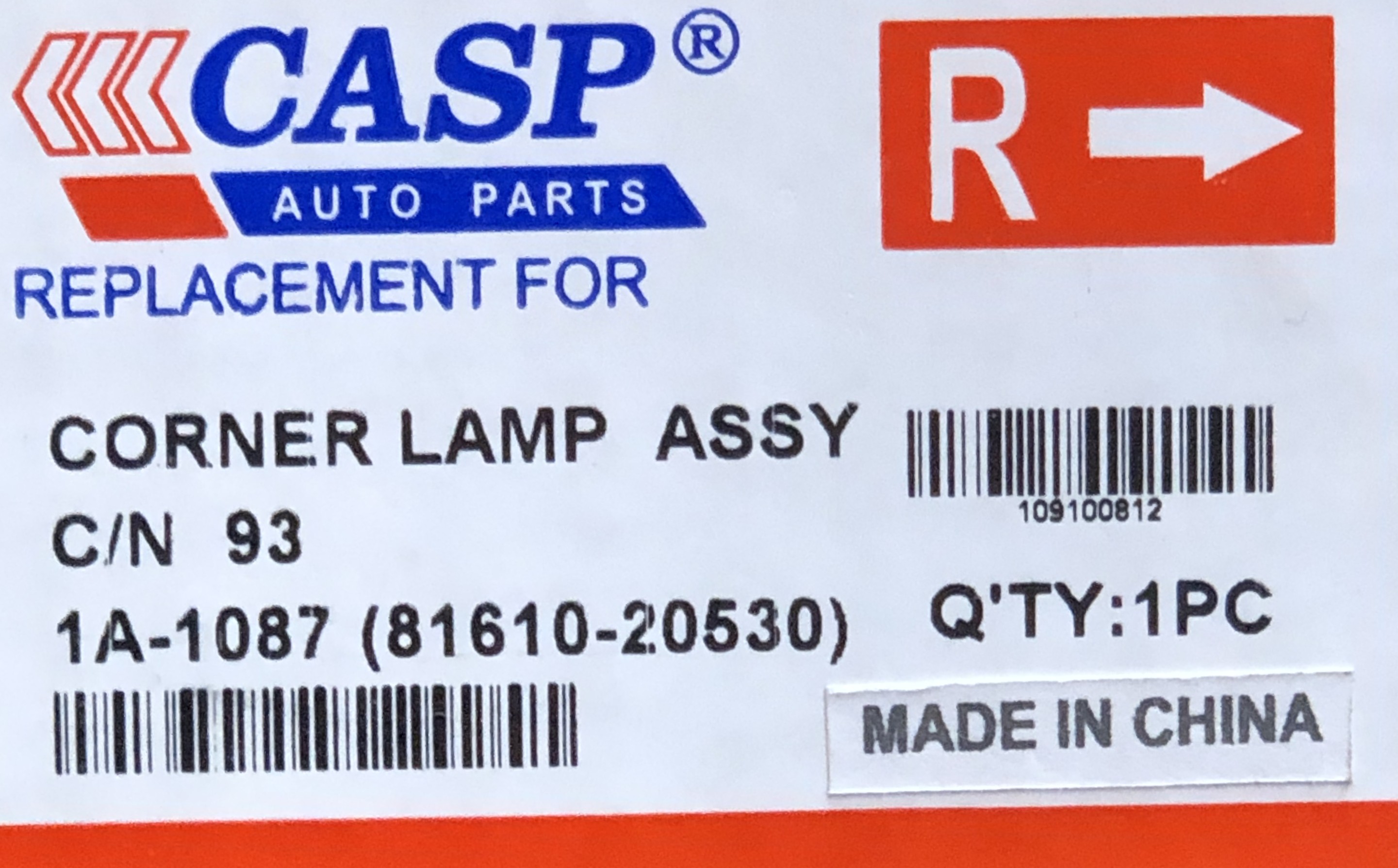 در تویوتا کرونا ST190، این چراغ هم نقش زیبایی و تکمیل کننده گوشه گلگیر را دارد و هم به عنوان چراغ شب (پارک) عمل میکند (در برخی مدلها راهنما نیز هست). برند CASP چین این قطعه را با قالبی مشابه نمونه اصلی تویوتا (Koito) اما با متریال ارزانتر تولید کرده است. این چراغ با یک پیچ به بدنه چراغ اصلی متصل شده و با خارهای ریلی به گلگیر قفل میشود.