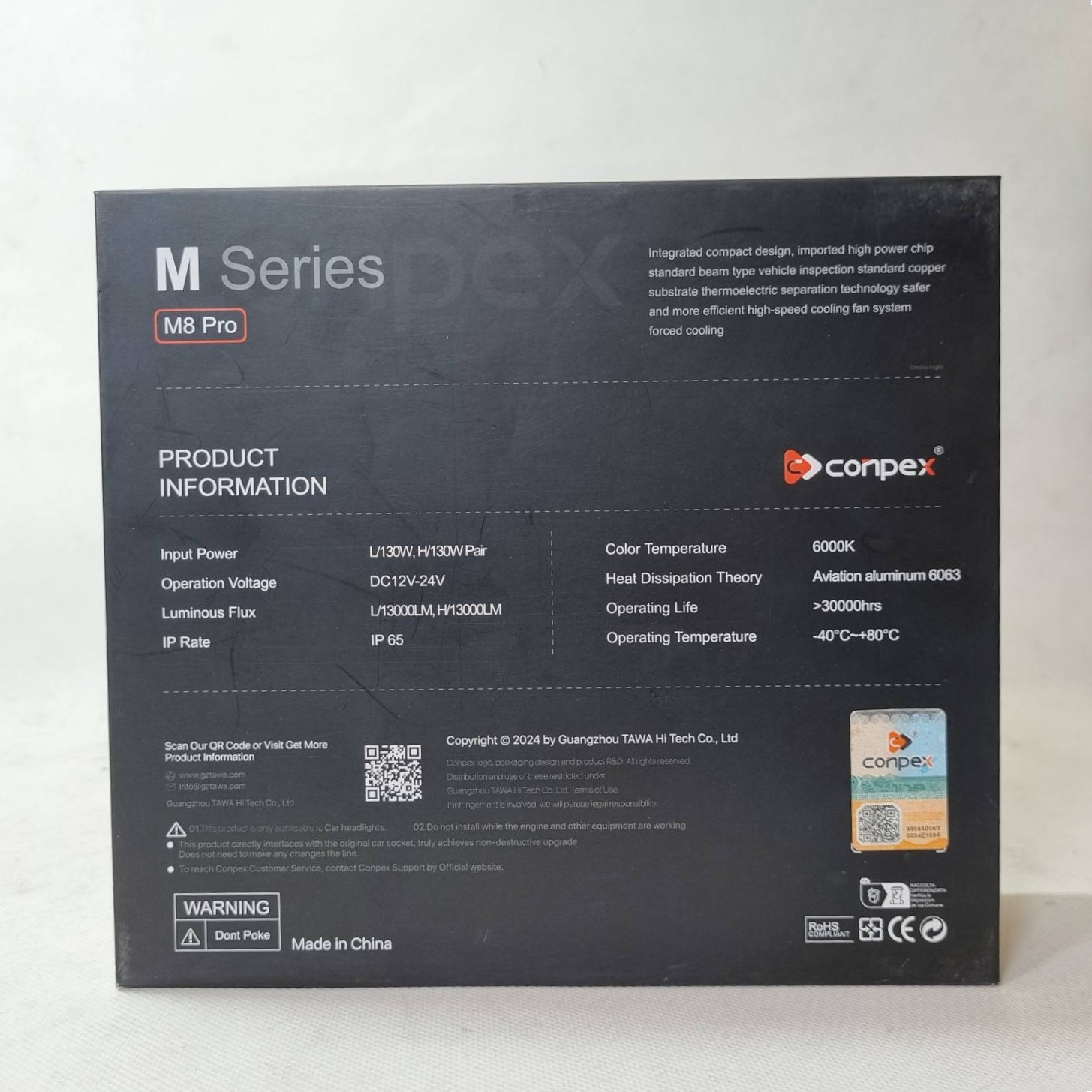 - توان واقعی ۱۳۰ وات (جفت): برخلاف مدل قبلی (MAVA) که عدد تبلیغاتی عجیب داشت، Conpex عدد 130W را برای جفت لامپ اعلام کرده است. این یعنی هر لامپ حدود ۶۵ وات توان دارد که قدرتی بسیار بالا برای یک هدلایت محسوب میشود و نویدبخش پرتاب نور عالی است.