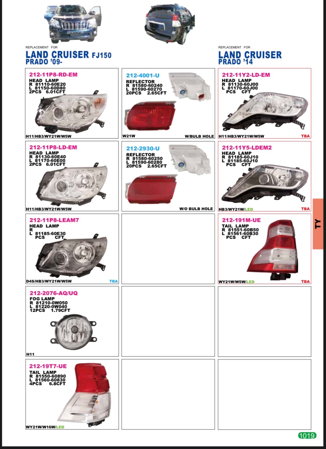 جهت اطمینان از تطابق با سیستم استاندارد تویوتا، این چراغ بر اساس شماره فنیهای اصلی زیر قالبگیری و تولید شده است: